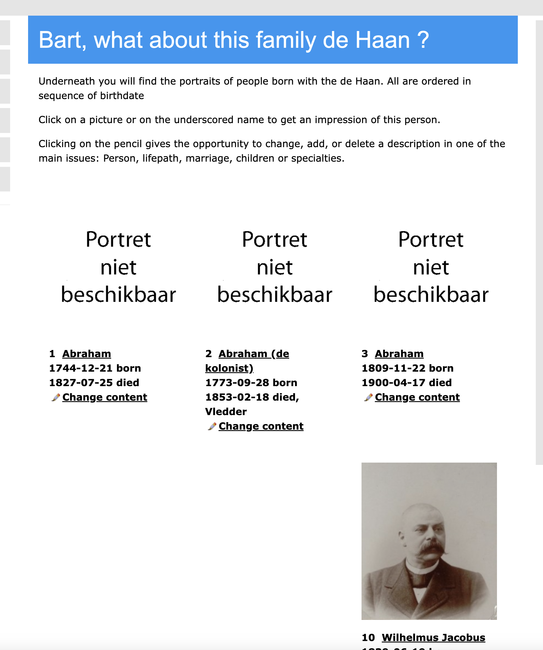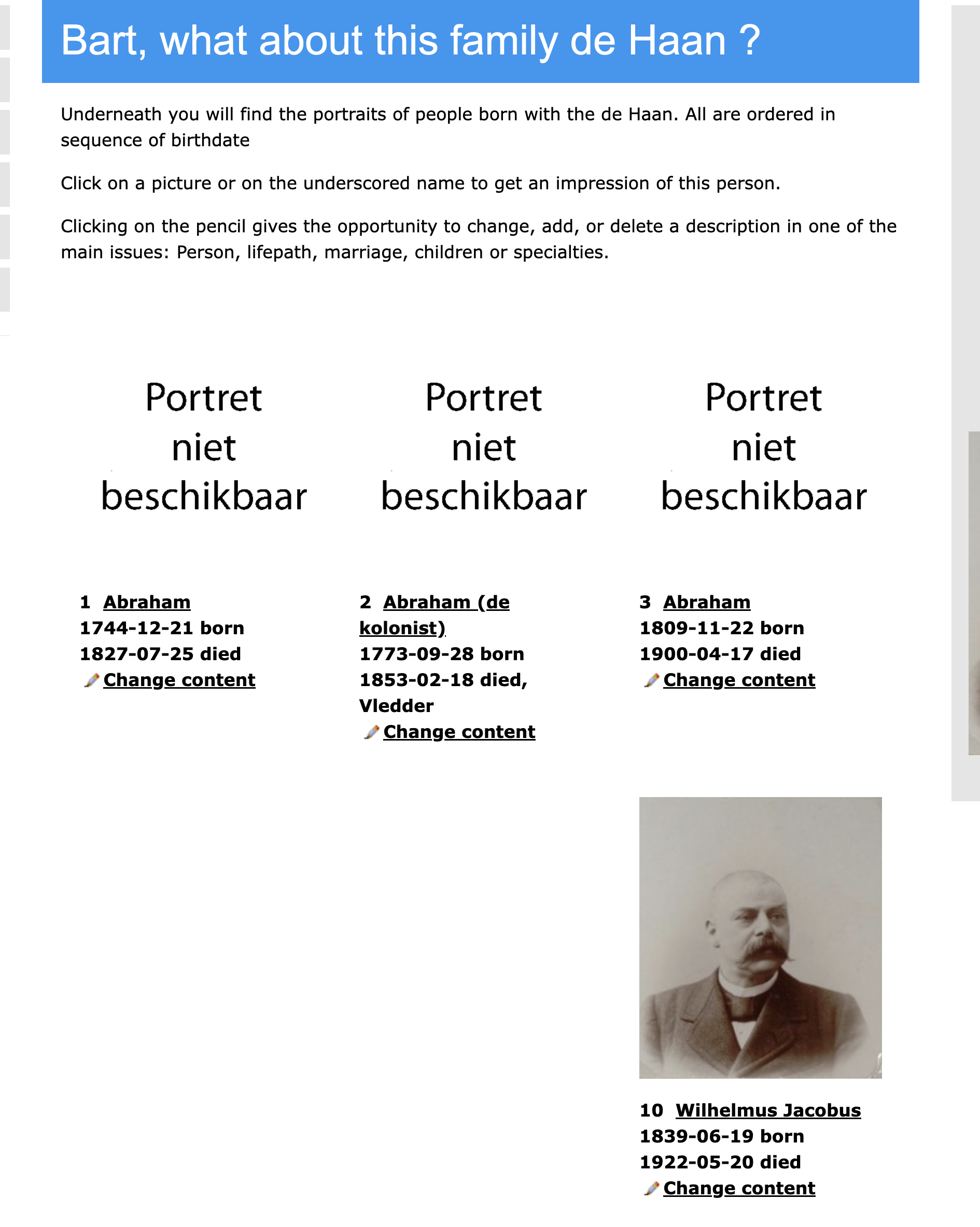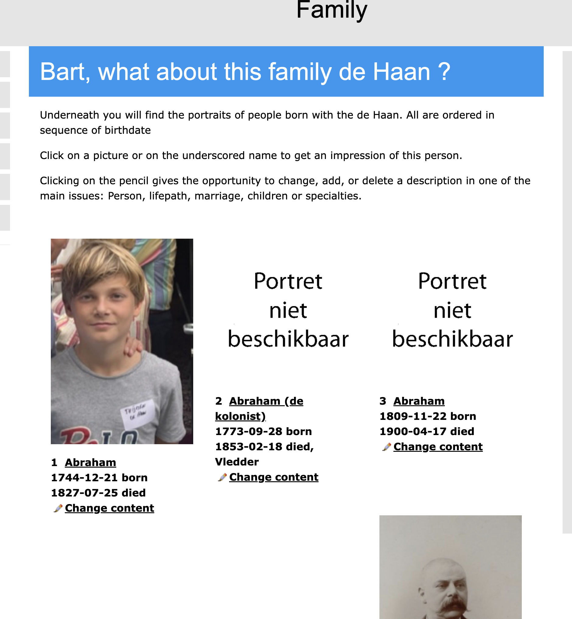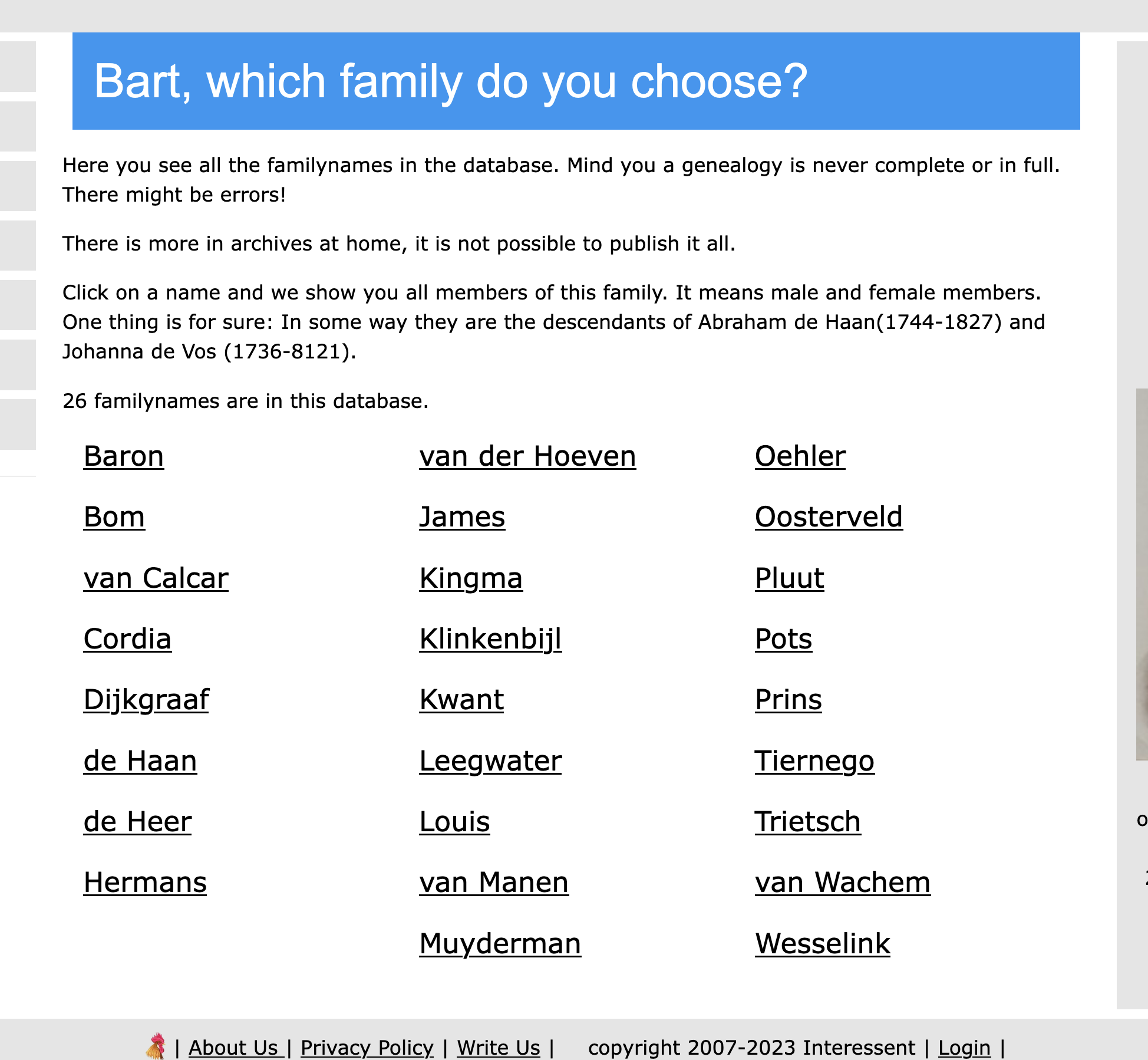 Je gaat naar de pagina met de familienamen en kiest de familienaam.