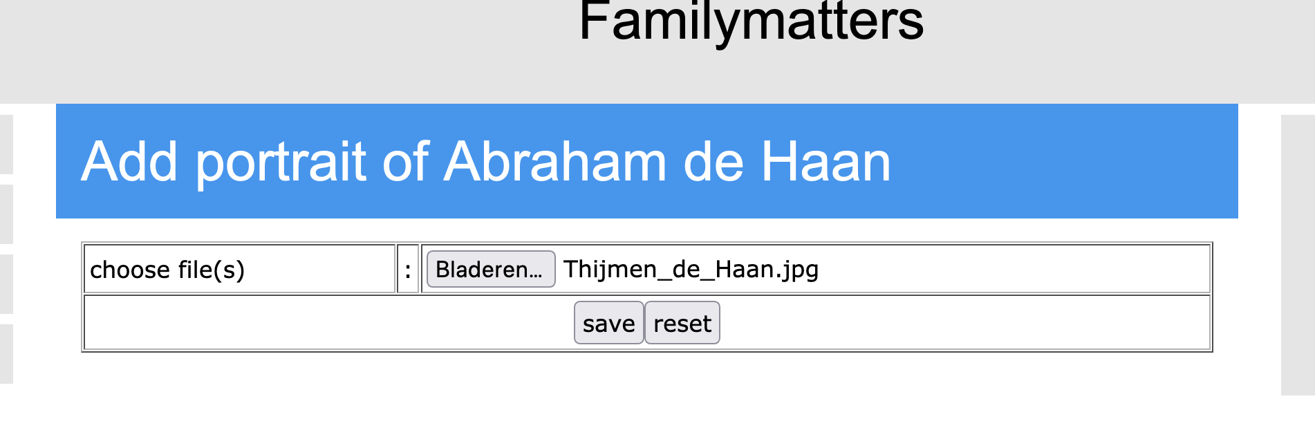 Deze functie is bedoeld om de portretfoto van een van de familieleden in zijn of haar profiel op te nemen. Het belangrijkste is dat je eerst een portret als foto moet hebben gescanned en in je computer of telefoon hebt voordat je deze functie gaat gebruiken. Zonder foto geen portret!